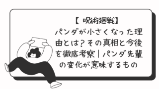 漫画【呪術廻戦】パンダが小さくなった理由とは?その真相と今後を徹底考察|パンダ先輩の“変化”が意味するもの 『呪術廻戦』で独特の存在感を放つパンダ先輩。陽気な性格とパワフルな戦闘スタイルでファンを魅了してきましたが、死滅回游編で突然「パンダが小さくなった!」と話題に!ぬいぐるみサイズに縮んだ姿に、ファンからは「かわいいけど心配」「元に戻... 2025.05.21漫画
