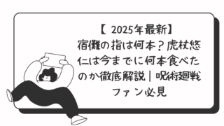 人物【2025年最新】宿儺の指は何本?虎杖悠仁は今までに何本食べたのか徹底解説|呪術廻戦ファン必見 宿儺の指の総数とその意味 宿儺の指は全部で20本。 これは両面宿儺が顔が2つ・腕が4本=指20本という異形の存在であることから由来しています。第1巻・アニメ第1話でも明示され、物語の核として描かれてきました。 指1本ごと... 2025.05.21人物