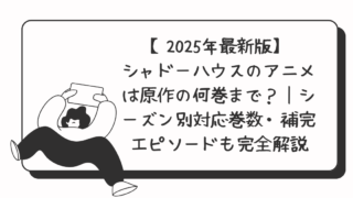 漫画【2025年最新版】シャドーハウスのアニメは原作の何巻まで?|シーズン別対応巻数・補完エピソードも完全解説 はじめに:アニメでハマったあなたへ 謎と不気味さが交錯する話題作『シャドーハウス』。2021年にアニメ化され、その不思議な世界観とダークファンタジーな展開に惹き込まれた人も多いはずです。 「続きが気になる……!」 そう思... 2025.05.21漫画