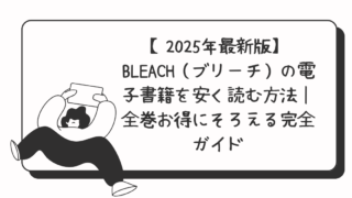 電子書籍【2025年最新版】BLEACH(ブリーチ)の電子書籍を安く読む方法|全巻お得にそろえる完全ガイド はじめに:BLEACHを“安く”読みたいあなたへ かつて『週刊少年ジャンプ』で一世を風靡した漫画『BLEACH(ブリーチ)』。死神代行の黒崎一護が繰り広げるバトルと成長の物語は、今なお多くのファンに愛されています。アニメの再アニメ化... 2025.05.21電子書籍