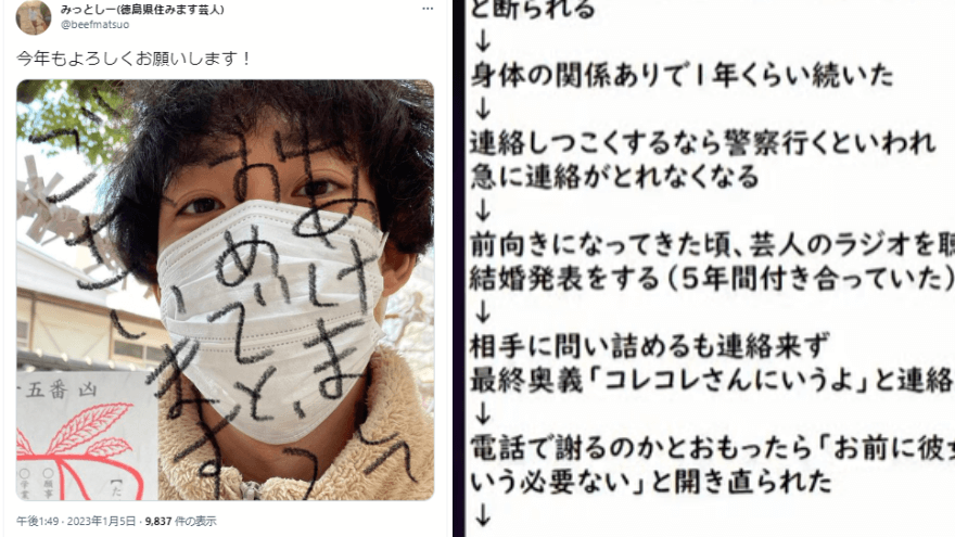 マッチングアプリ浮気芸人まとめ「福島住みます芸人みっとしー」コレコレ